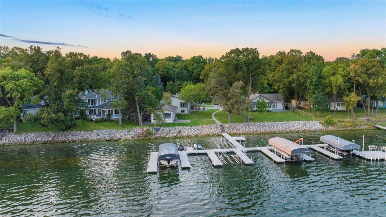Lake Le Homme Dieu opportunity! You cannot get any closer than this to the water and the views-- WOW! This one will create a chain reaction! You will love the charm of this nearly new 2-bedroom, 1-bathroom cabin that captivates even before you step inside. Use year round and a perfect starter to transition to the beautiful lakes area! Nestled in a small 7-unit association, this property is conveniently located on Lake Le Homme Dieu, right in the heart of the Chain of Lakes. Enjoy a worry-free lifestyle with no maintenance concerns. This cabin features a spacious open concept living area with large windows that offer stunning unobstructed lake views. The modern kitchen is equipped with stainless steel appliances and ample stone counter space. Step outside to the lakeside patios where you can savor your morning coffee while watching the sunrise, or host evening gatherings under the stars. Also includes access to a shared dock and slip, making it easy to enjoy boating, fishing, and other water activities. This lakeside retreat offers the perfect blend of relaxation and adventure year-round. Located on the chain and minutes to Alex, Golfing, Theatre Le Homme Dieu and a quick trip to restaurants via car or boat, even close enough to walk! Affordable living and on the chain!